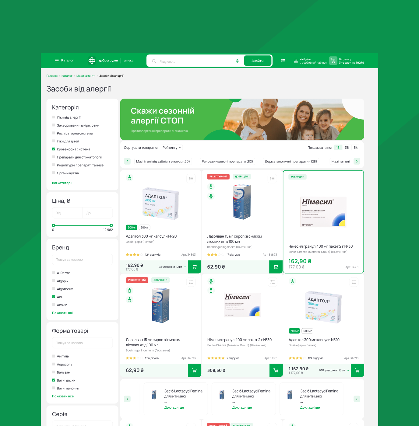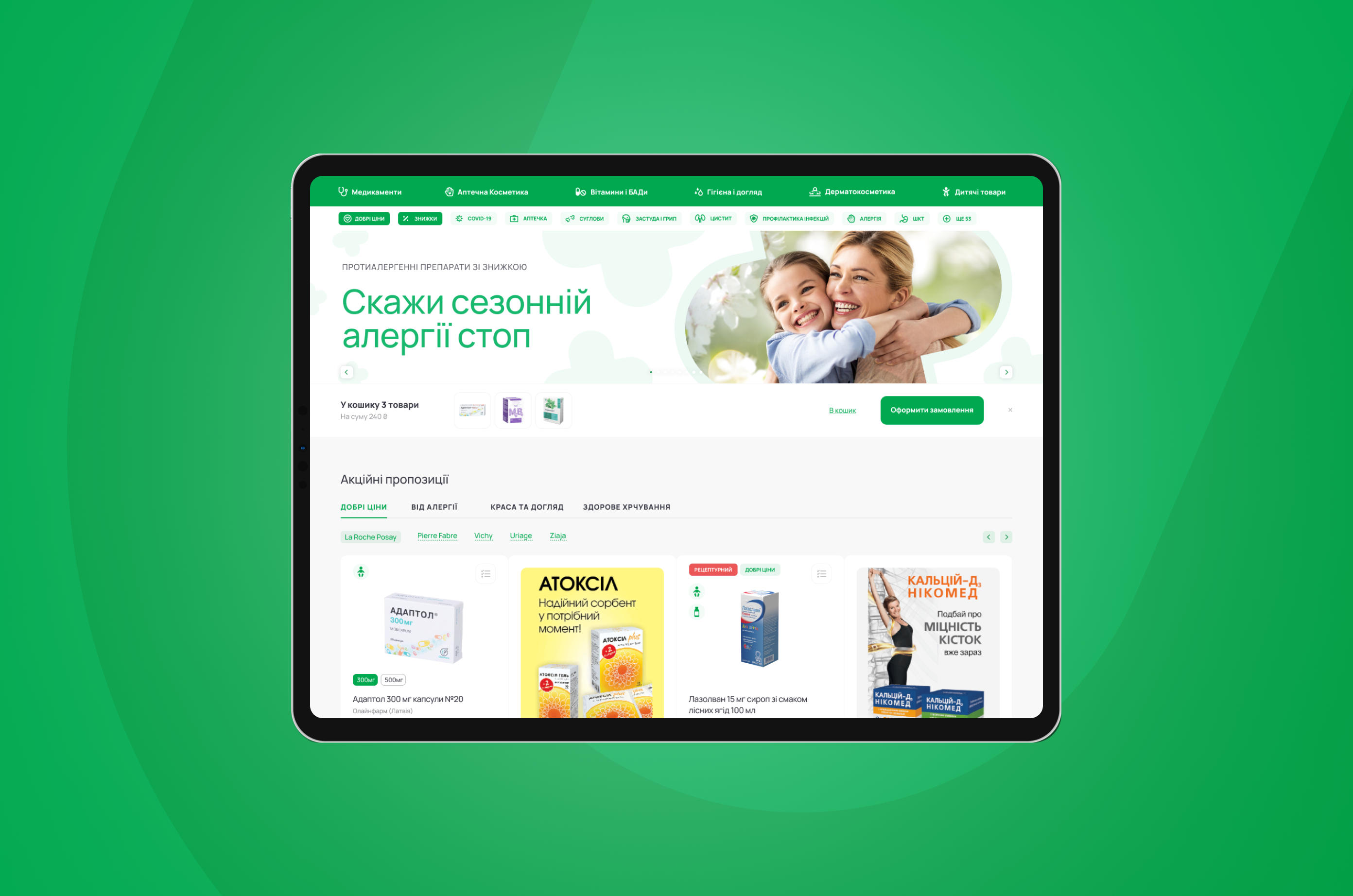 Комплексний редизайн e-commerce платформи для однієї з найвідоміших аптечних мереж України.
