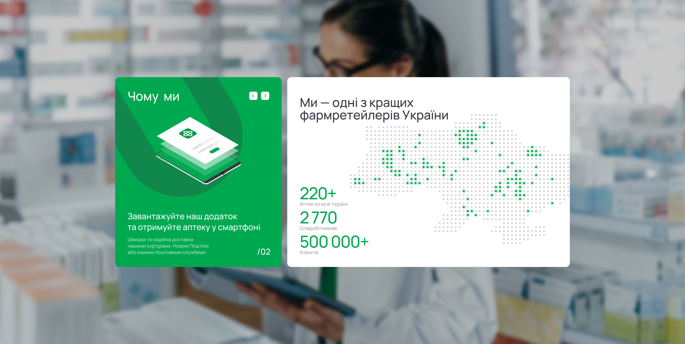 Новий дизайн сайту являє собою гармонійне поєднання стратегій для ефективної взаємодії з різними групами користувачів. Корпоративний аспект легко інтегрується з онлайн-аптекою, все в рамках єдиного інтерфейсу.
