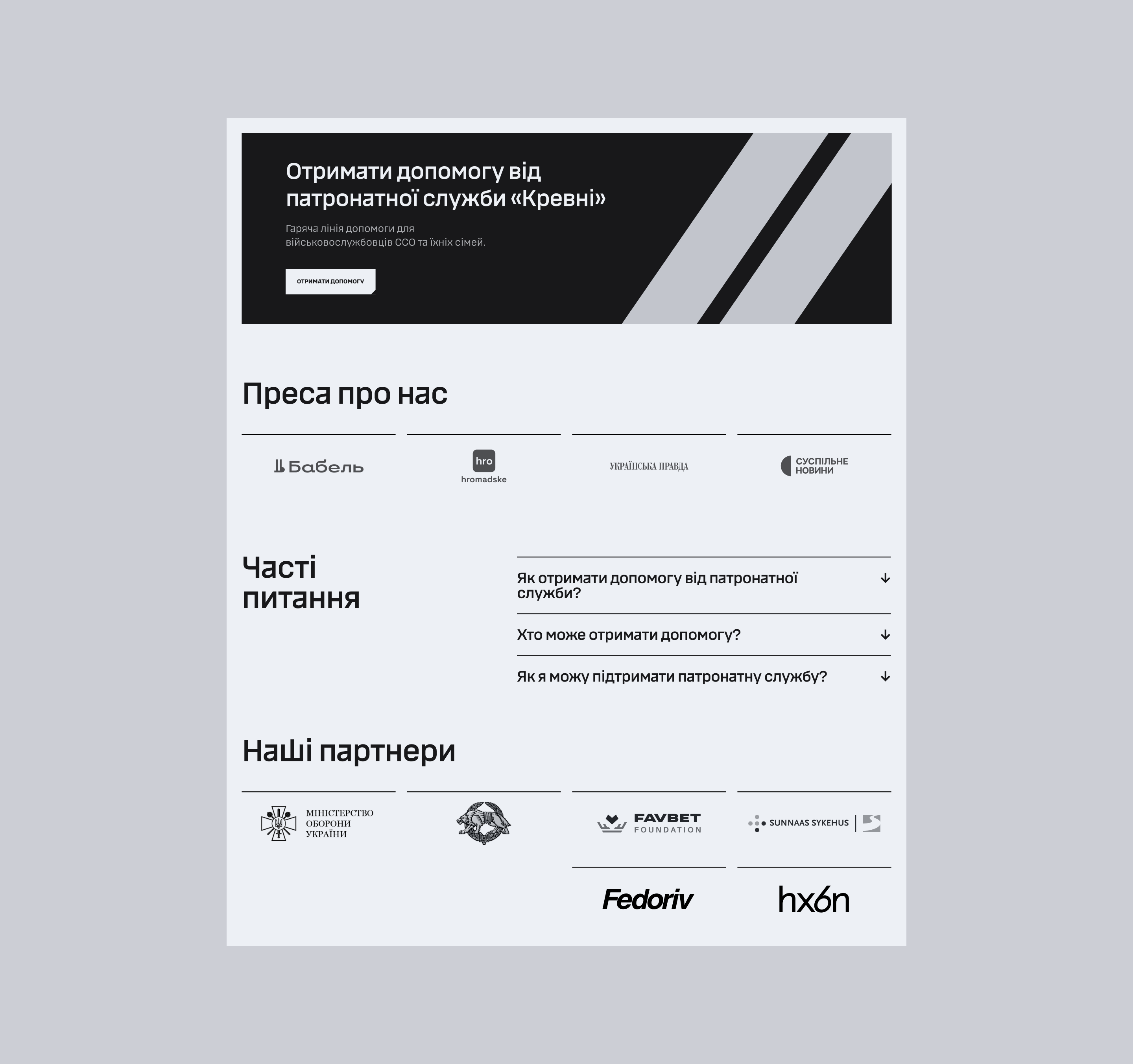 Лаконічний вебдизайн для патронатної служби Сил Спеціальних Операцій «Кревні».