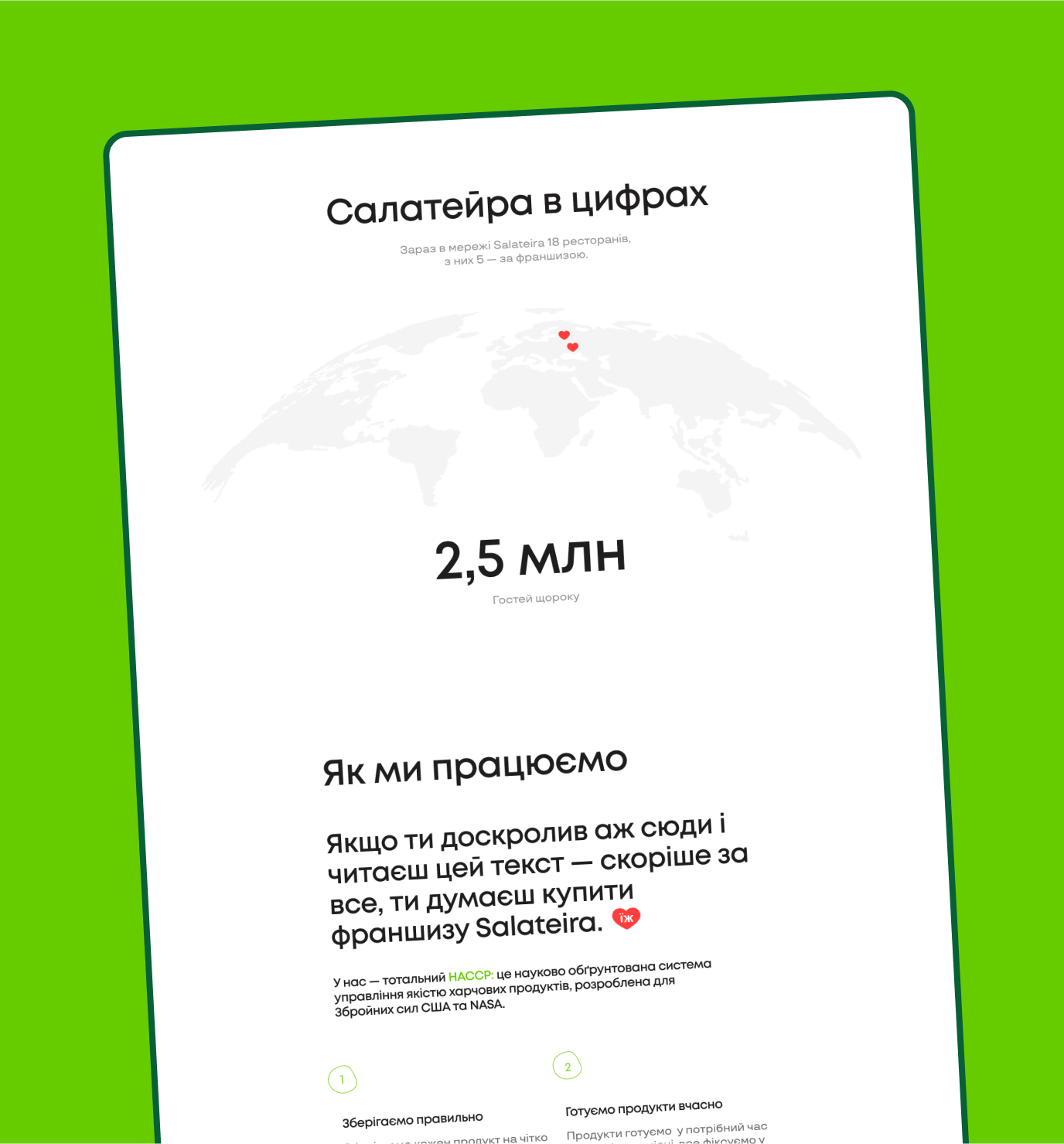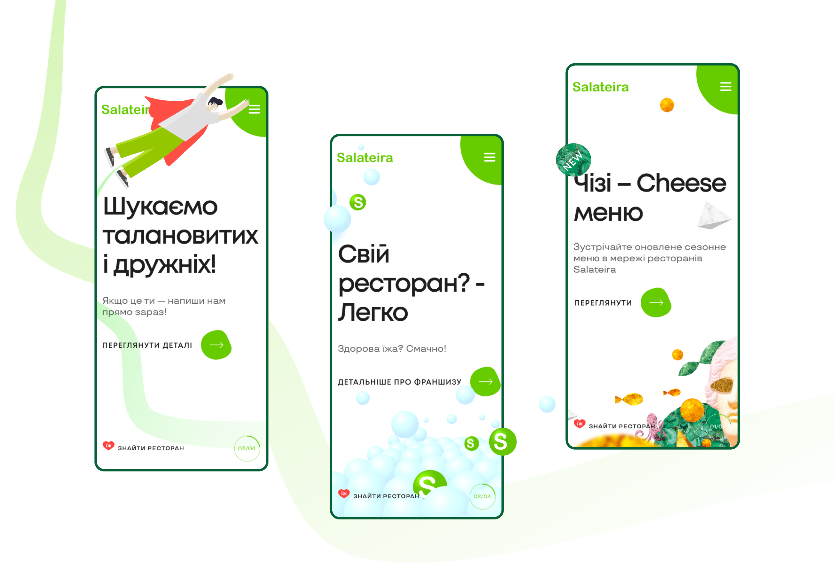 Наша команда співпрацювала з графічними дизайнерами Salateira над створенням візуальних наративів для вебсайту, що скріплюють візуальну цілісність бренду.