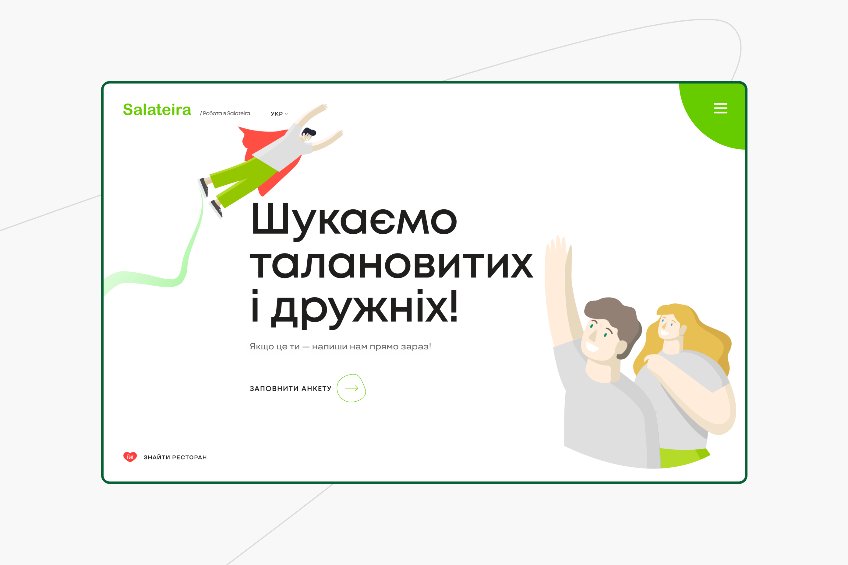 Редизайн сайту Salateira вийшов за рамки простого візуального оновлення. Мета полягала в тому, щоб передати унікальну атмосферу ресторанів Salateira, поєднуючи дизайн, технології, турботу та якісні пропозиції.