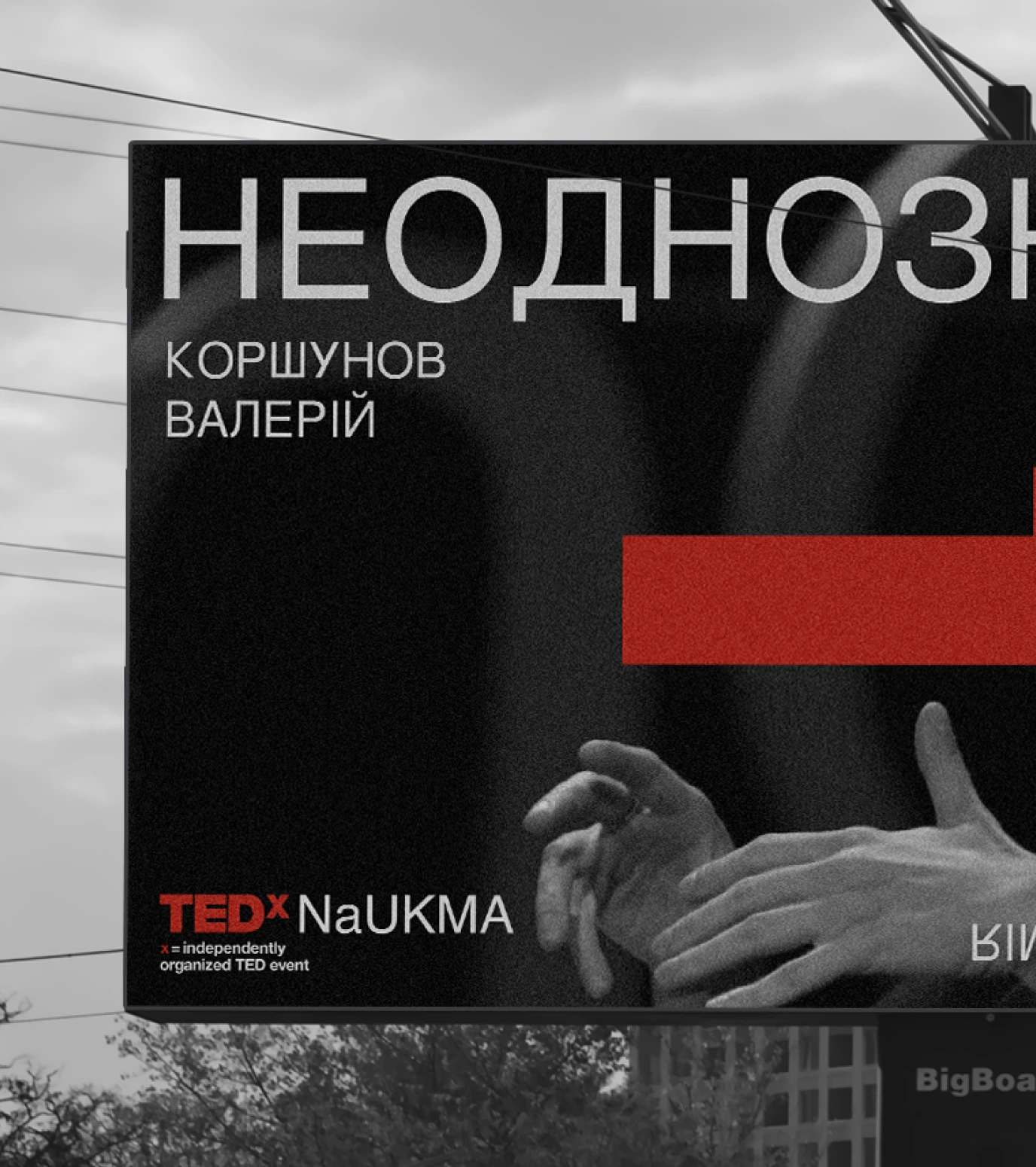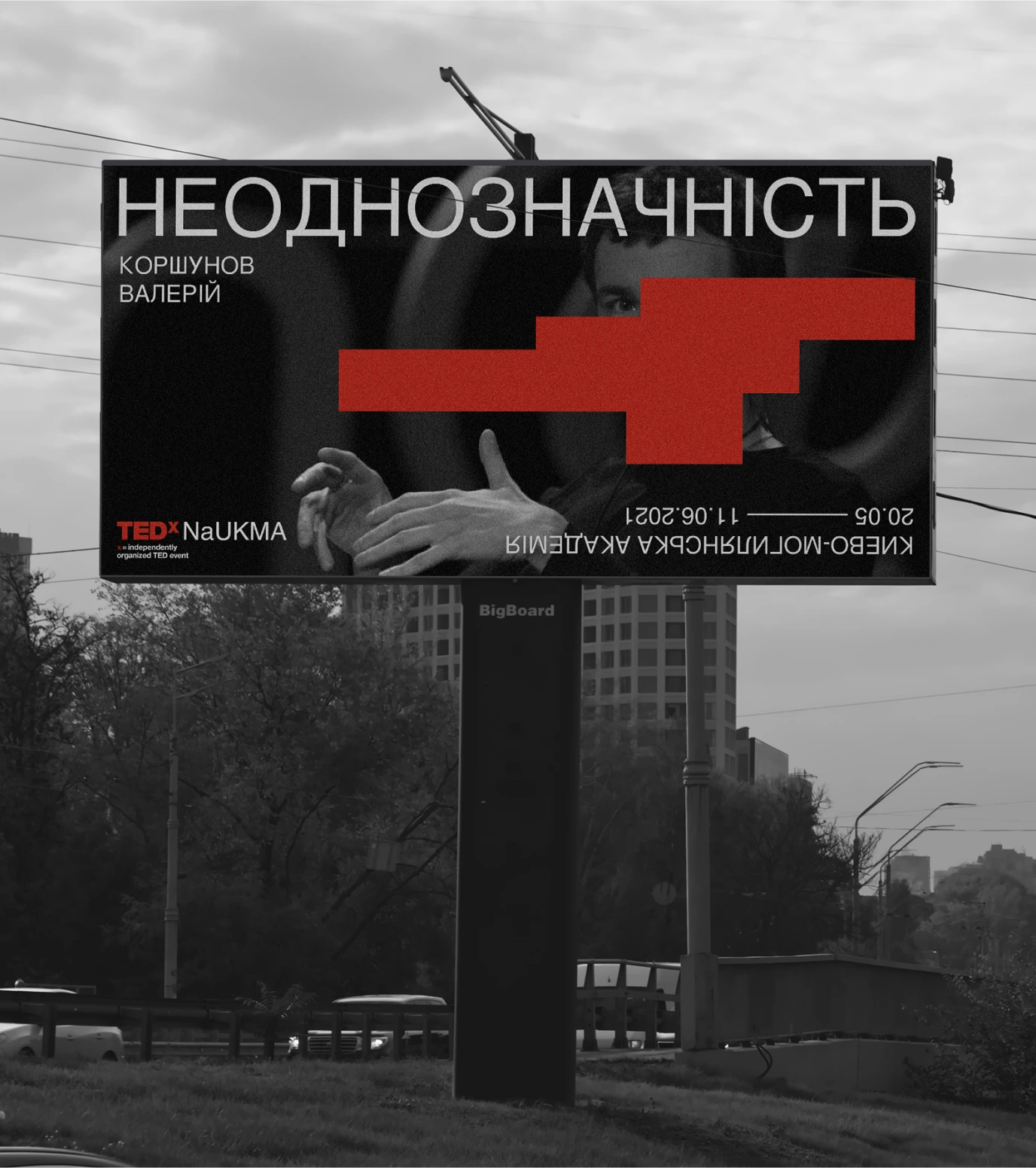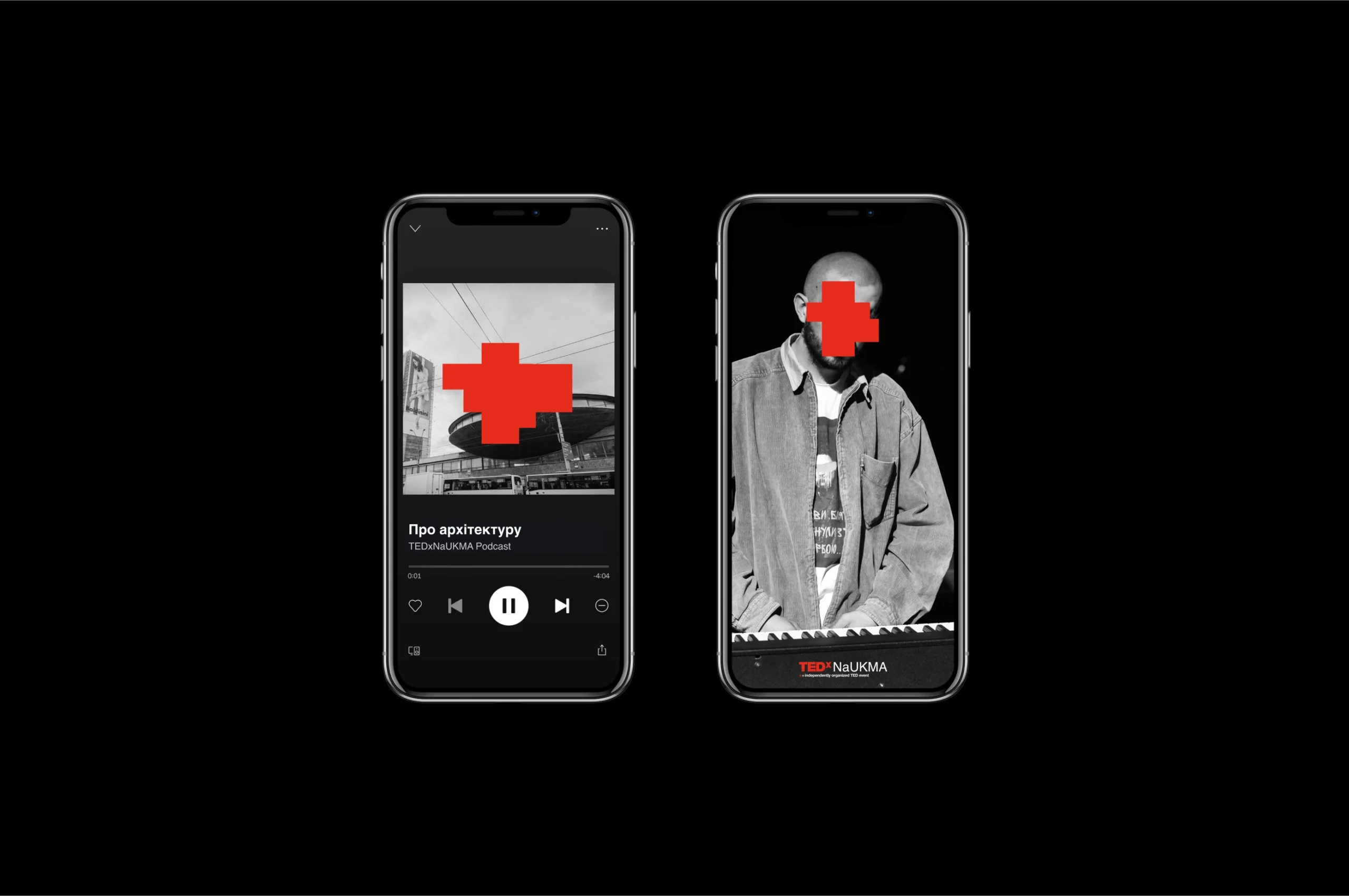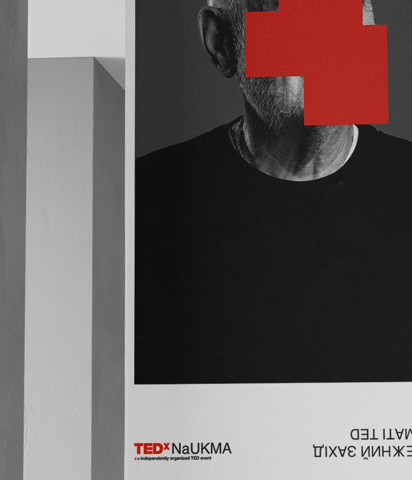 Ми почали шукати форму абстракції та знайшли рішення на фасадах. У формах які подарувал нам феномен graffiti removal. Нам сподобалось, що написане все ще можна розгледіти під рясними шарами фарби. Таким чином by hiding, we could create new meanings стало ключовою концепцією айдентики. Що рифмується зі слоганом TED “ideas worth spreading”.