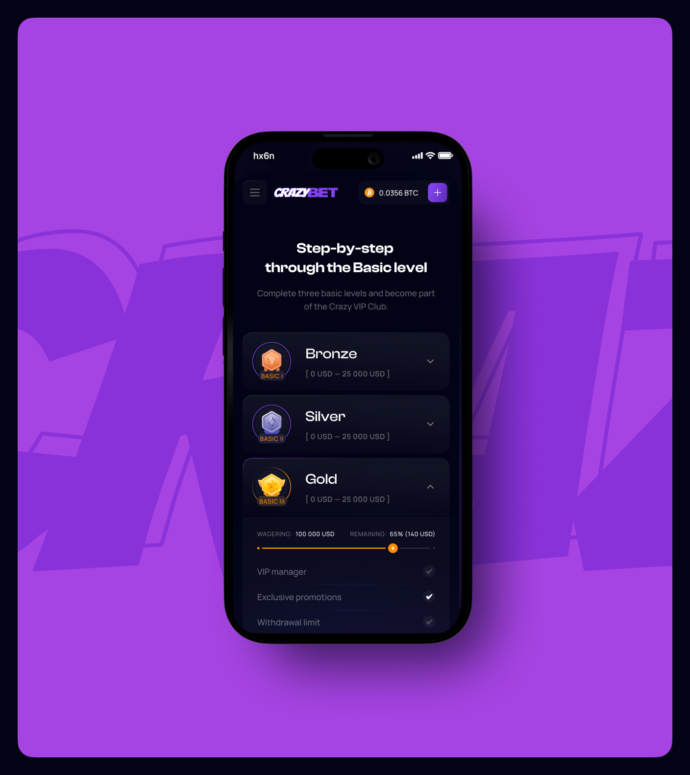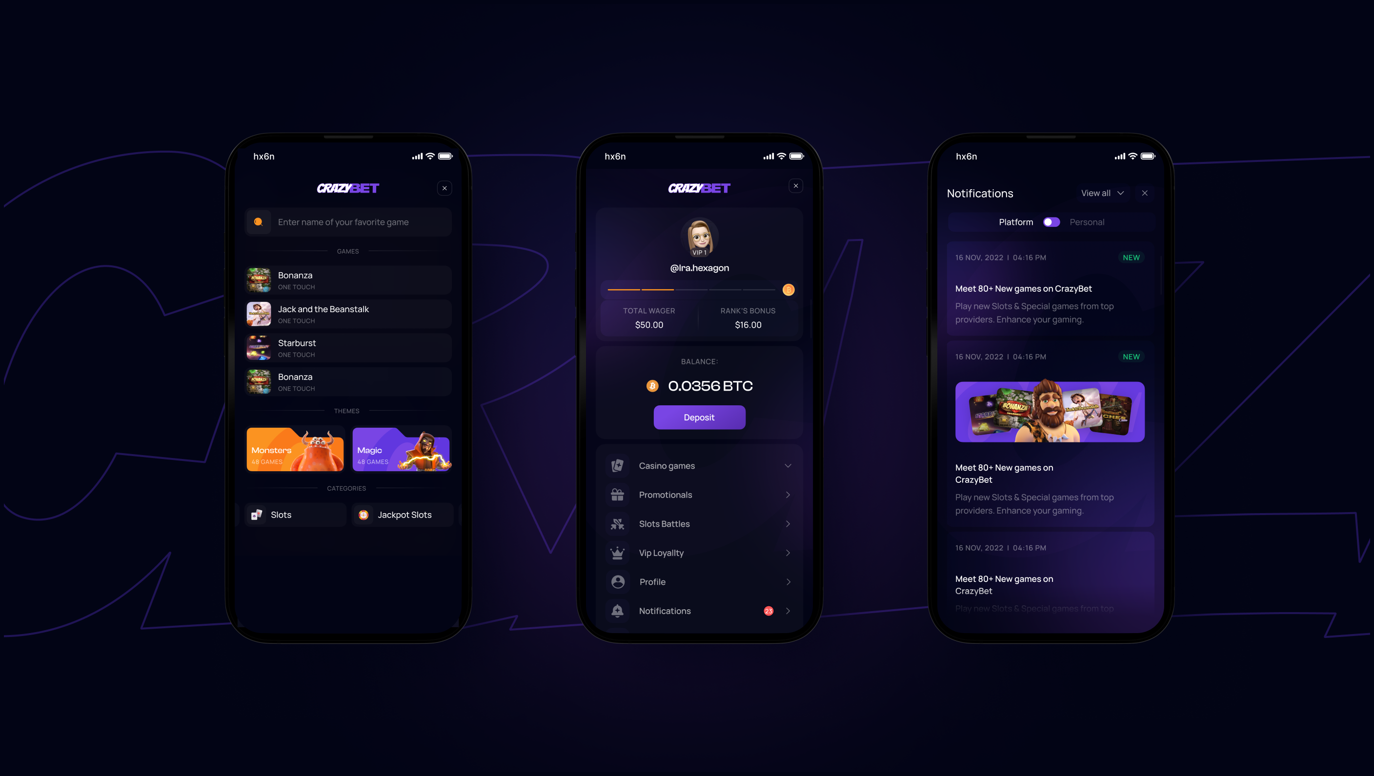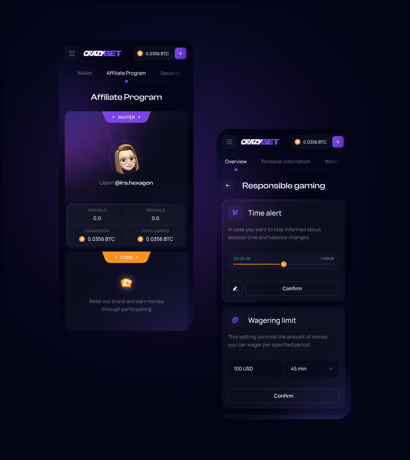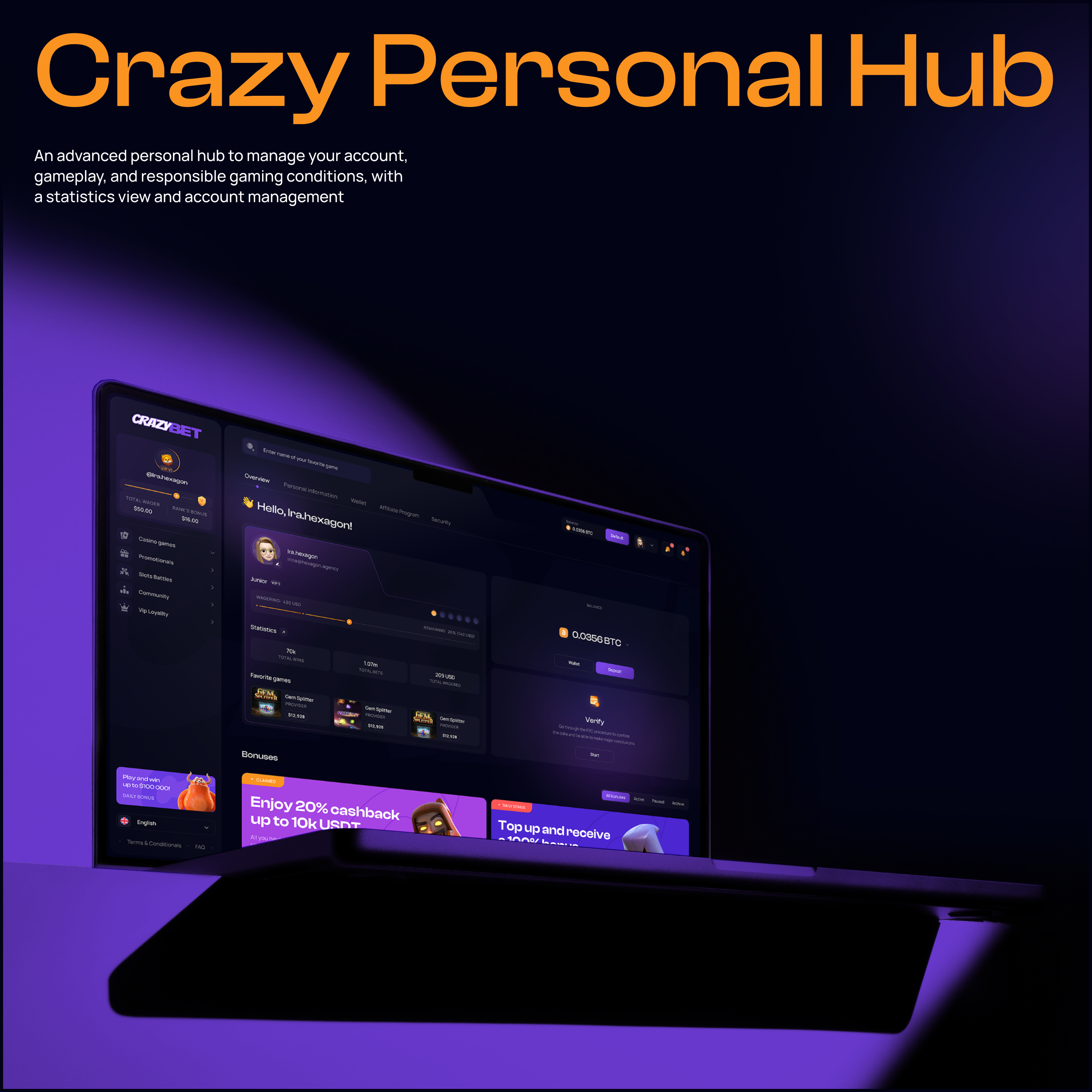 The visionary visual style not only set CrazyBet apart but also dictated the tone of the copywriting. It all makes even severe aspects of the casino feel approachable and enjoyable.