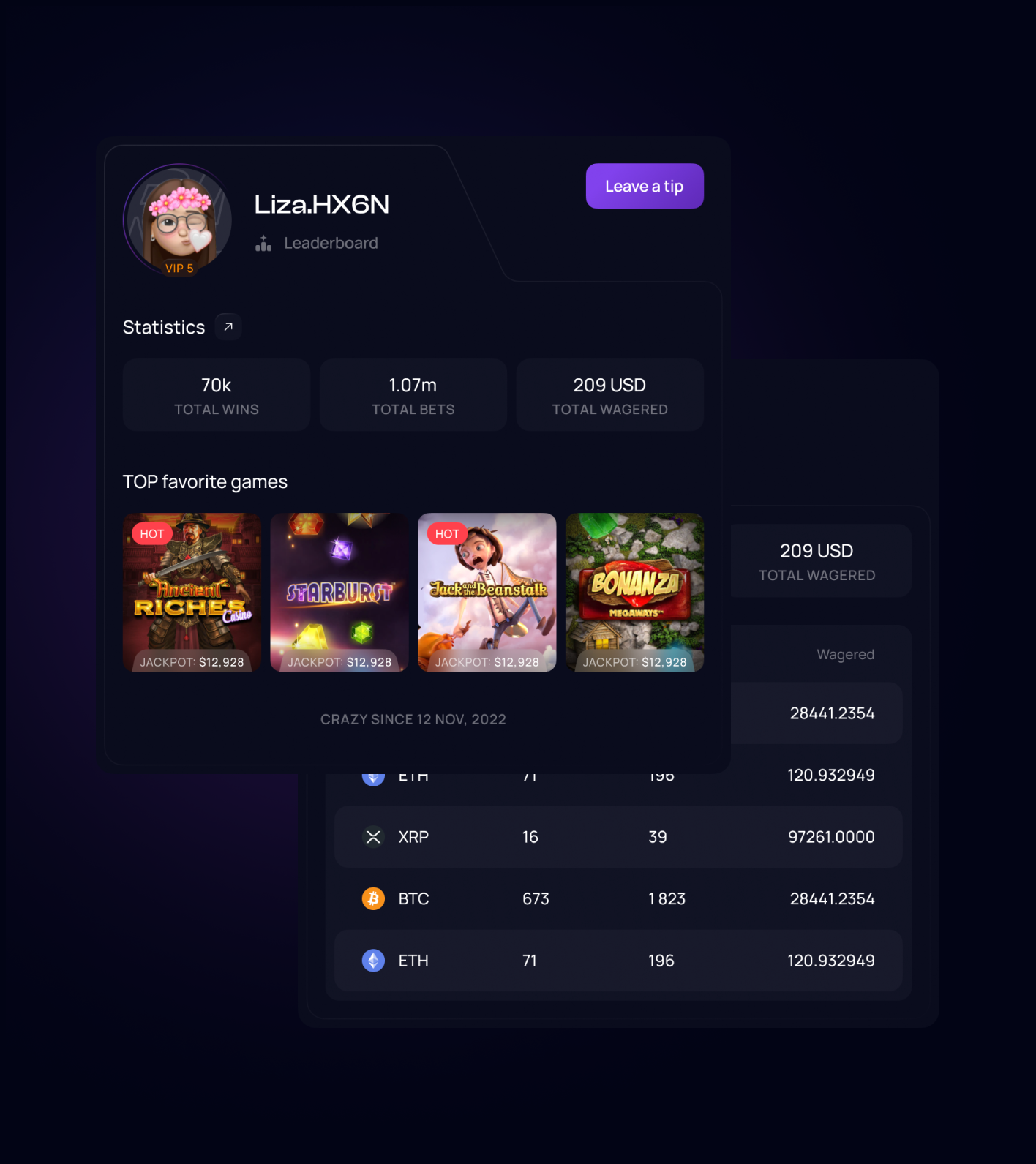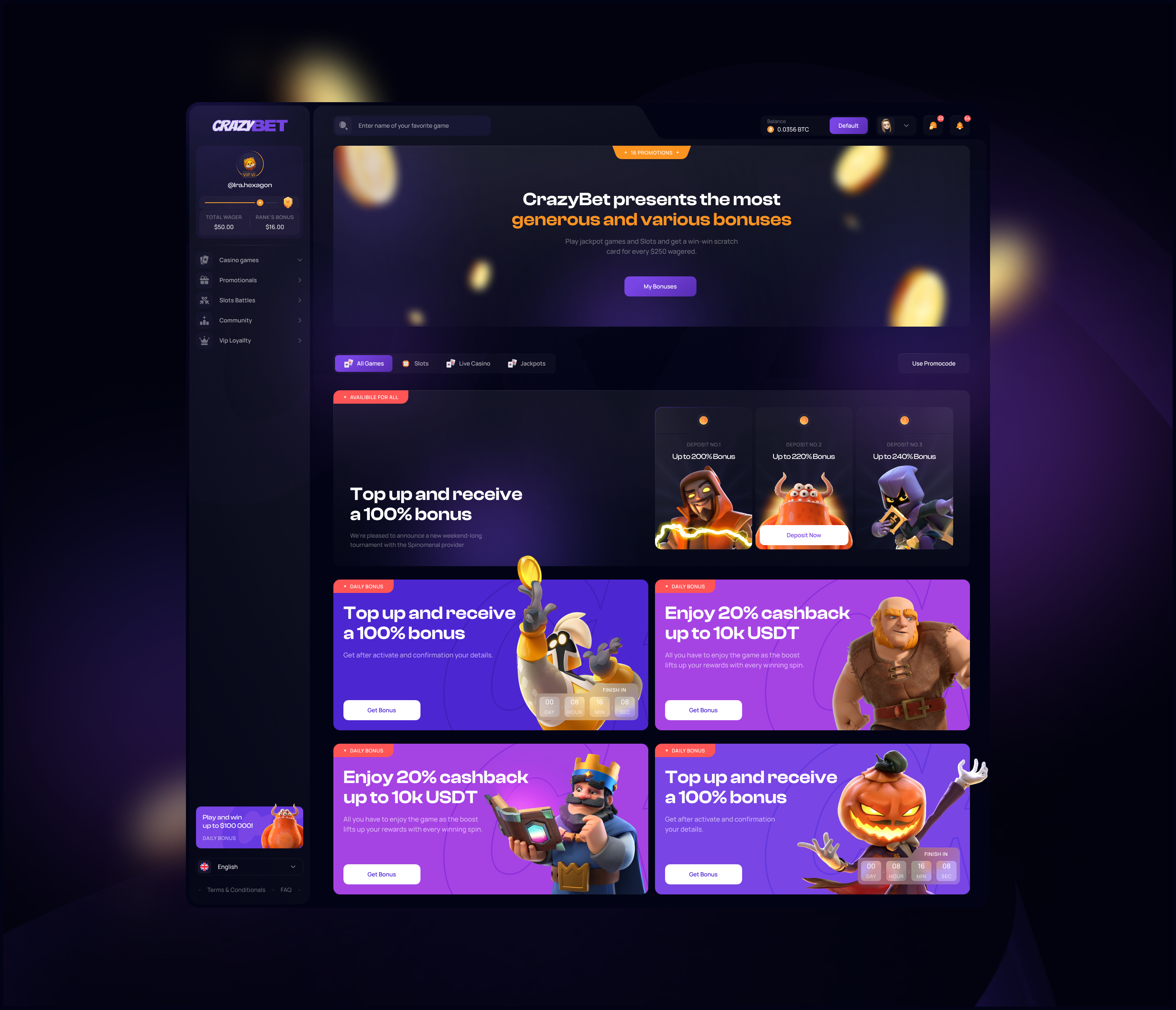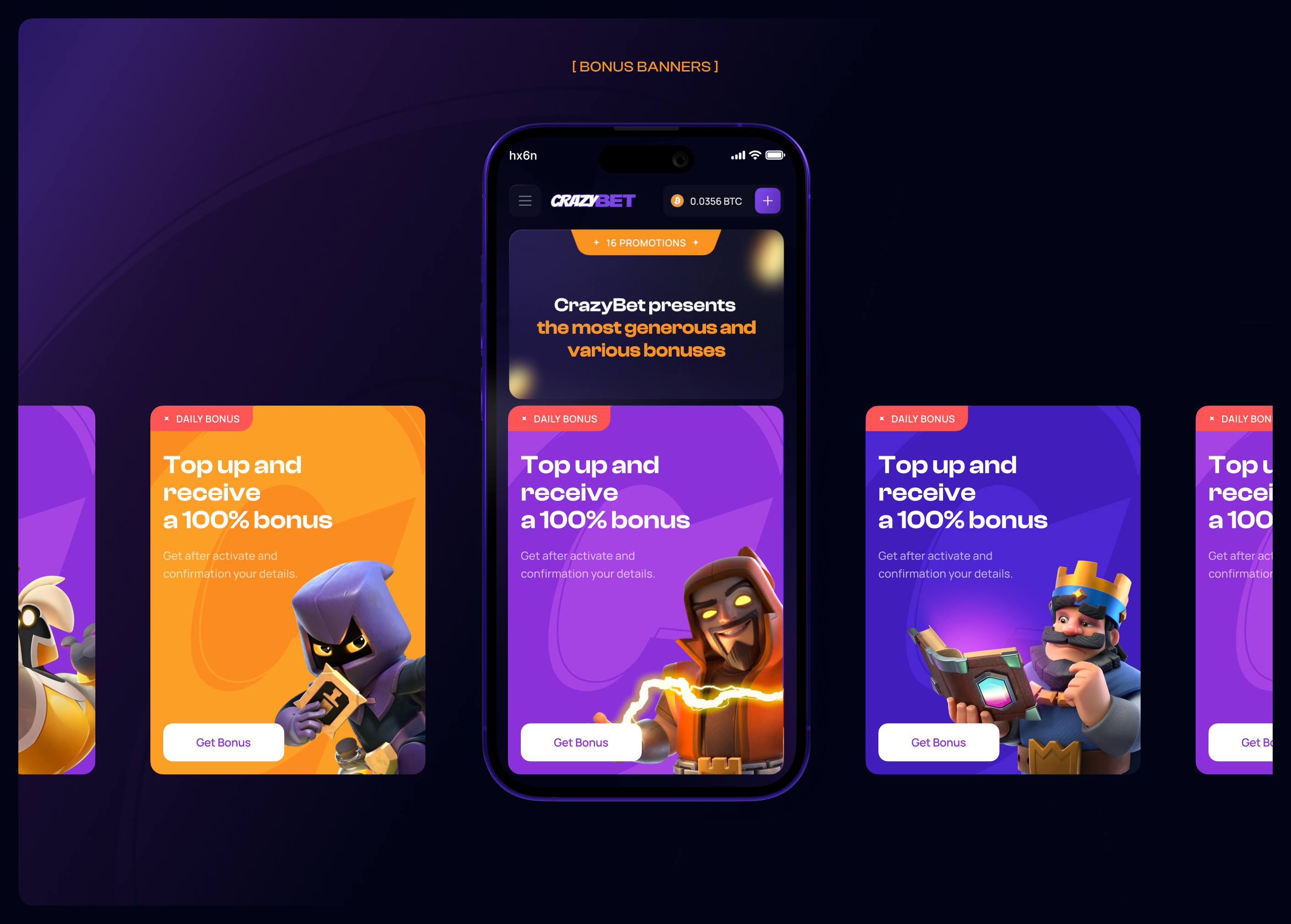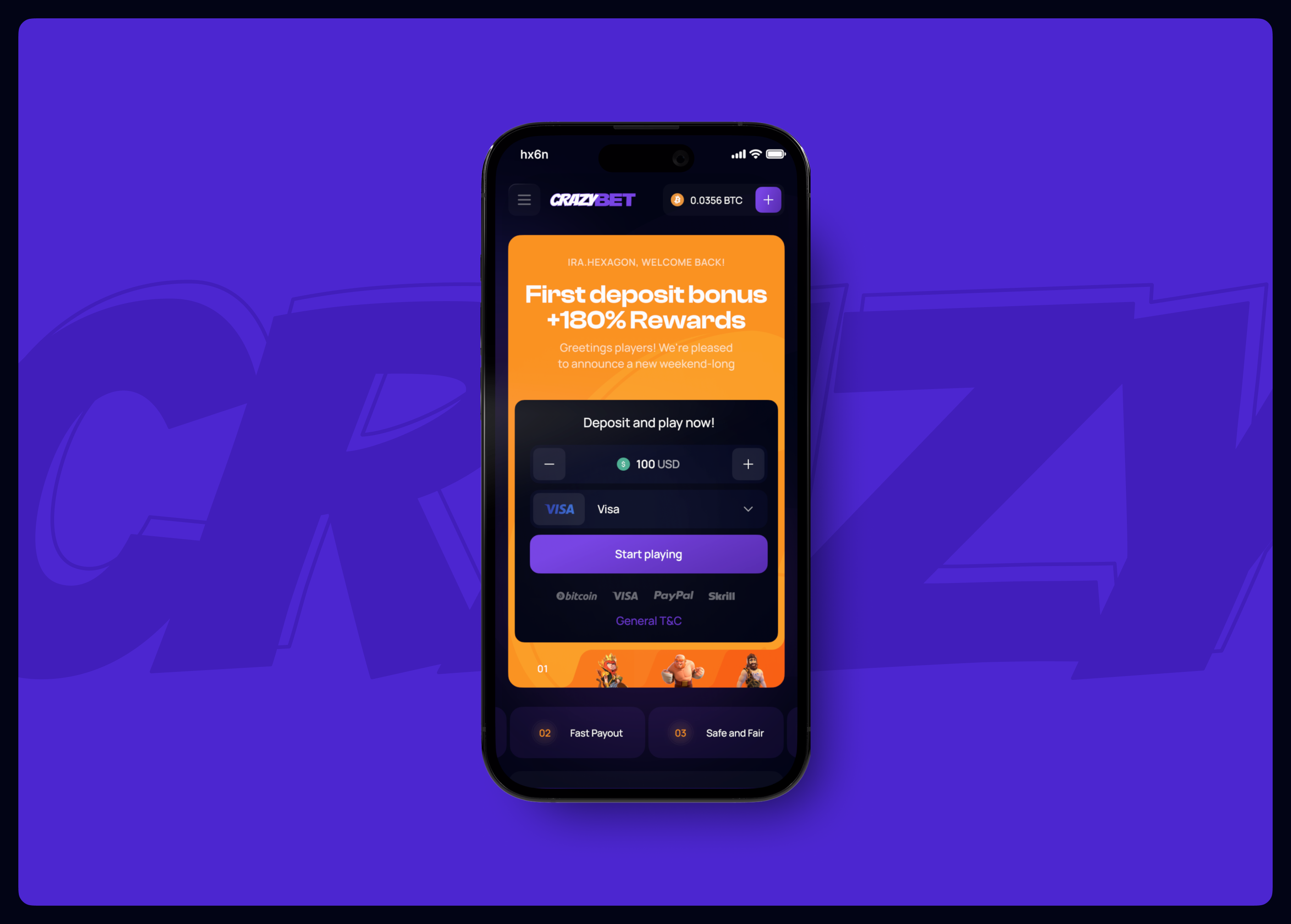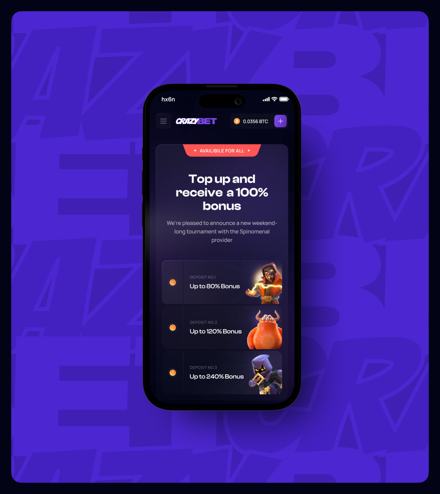 CrazyBet’s brand identity, inspired by vibrant graffiti, exudes excitement and fun. The logo’s fusion of two fonts perfectly balances entertainment and seriousness. This cohesive and recognizable identity sets CrazyBet apart, infusing the platform with a friendly and playful vibe. Players are transported to a thrilling, carnival-like world, making CrazyBet the go-to destination for an engaging online casino experience.