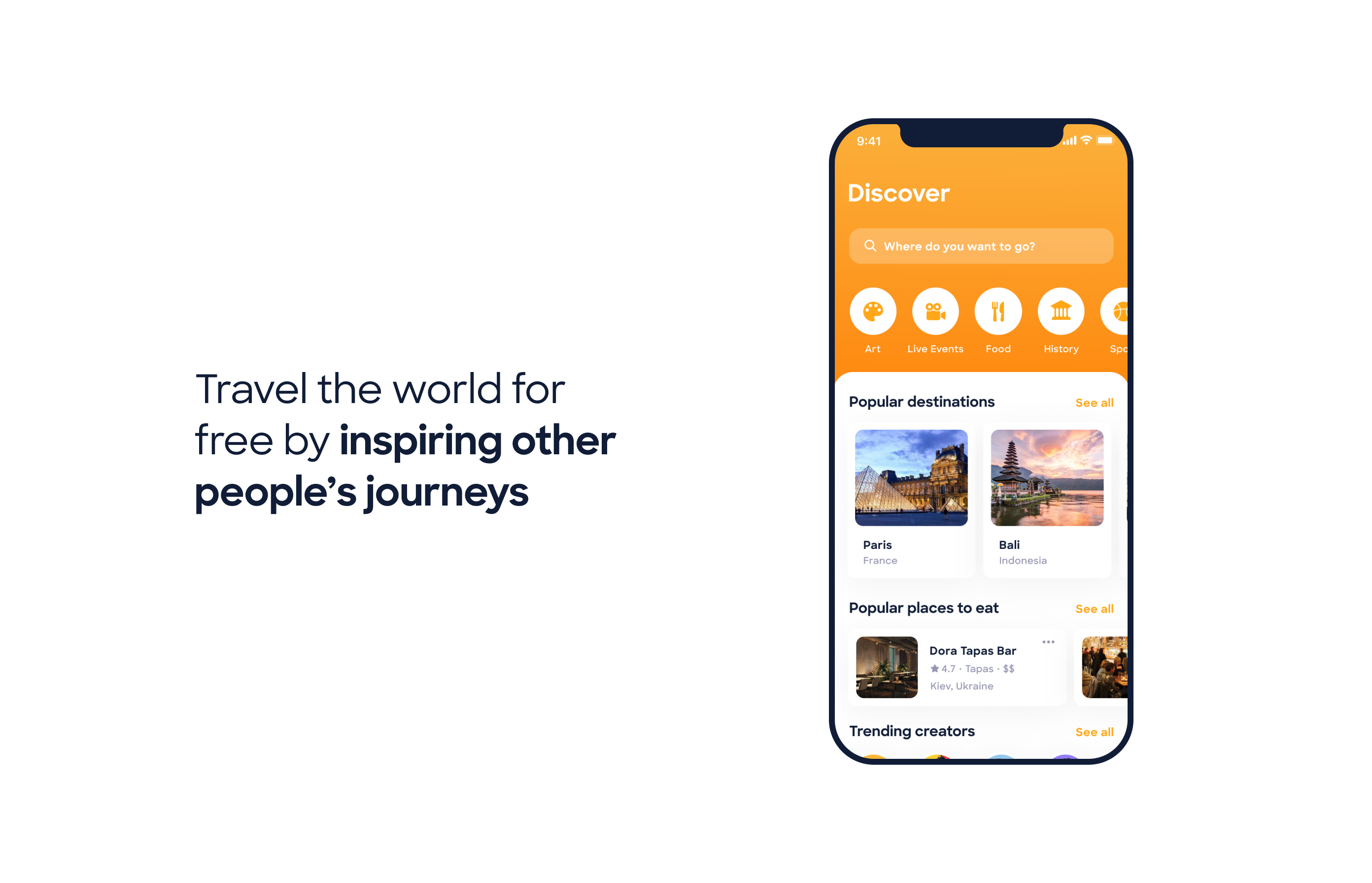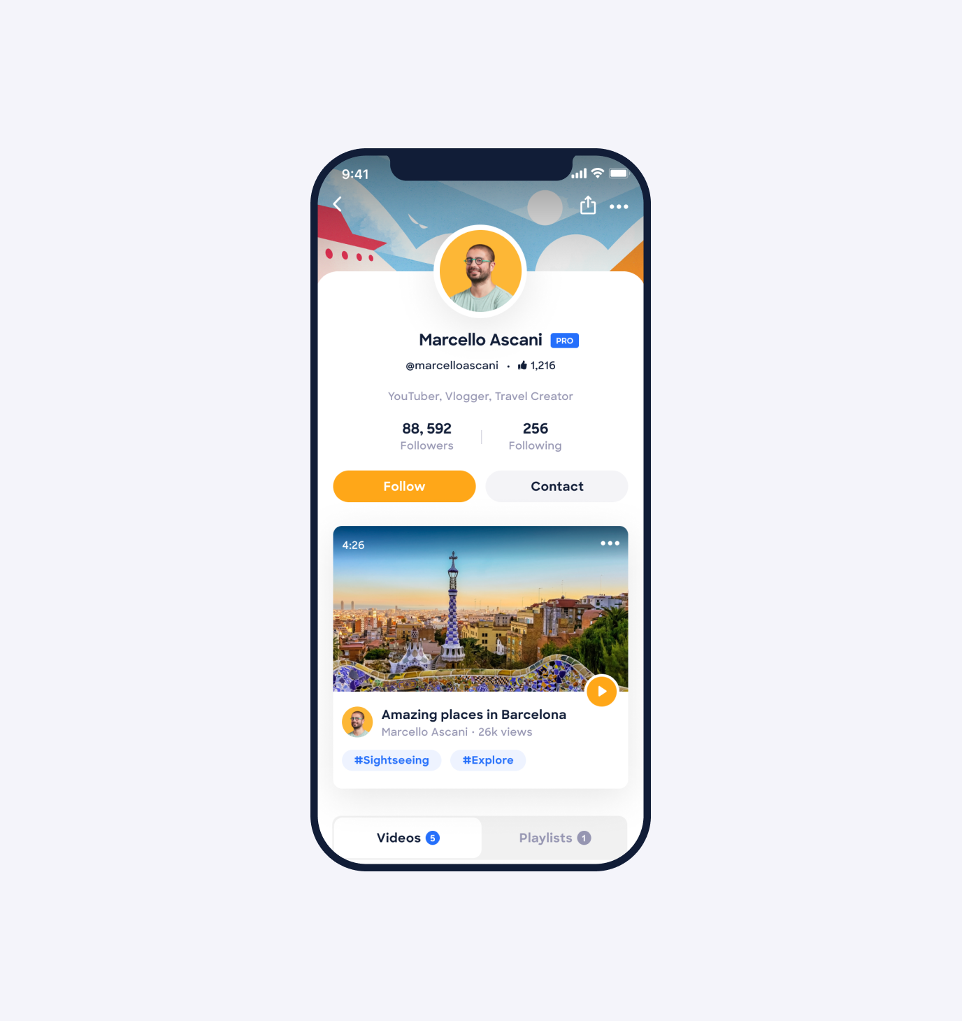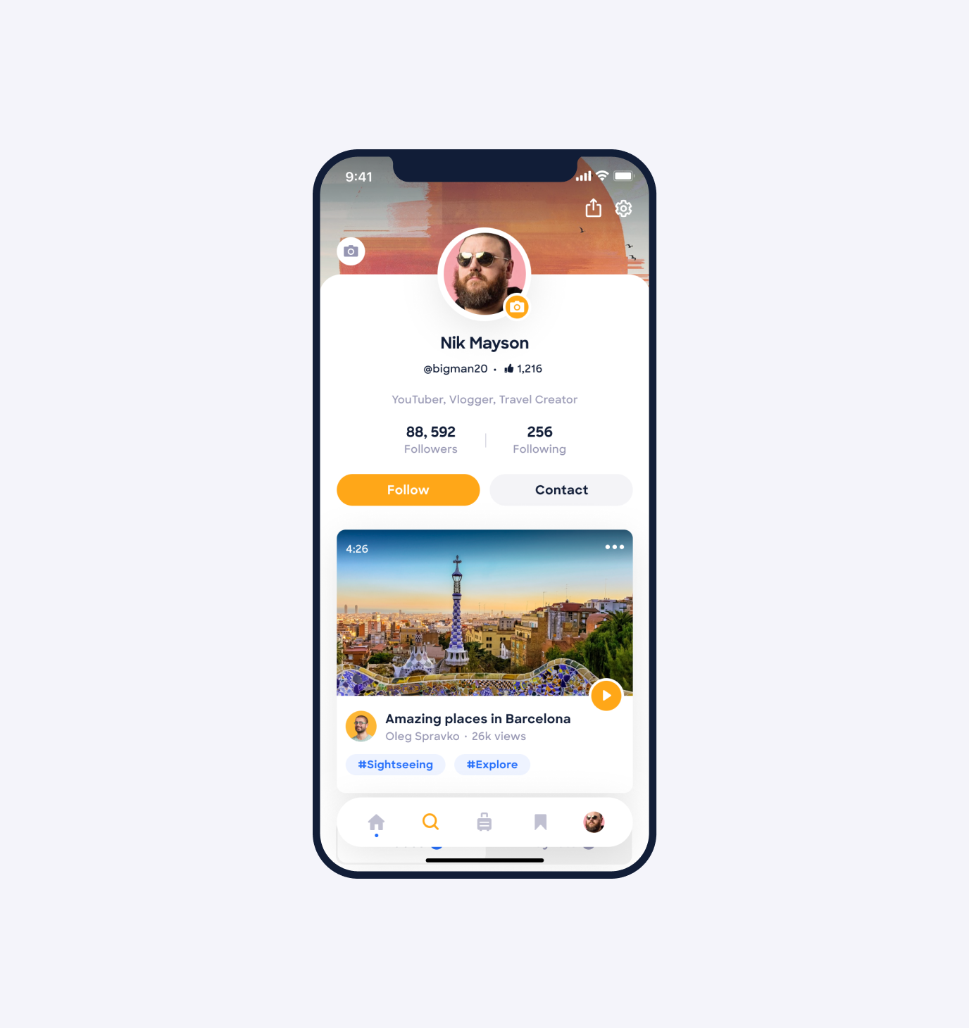 We aimed to embody the startup’s vibrant idea of connecting travel vloggers with voyagers and travel businesses by designing a mobile application and its brand style.