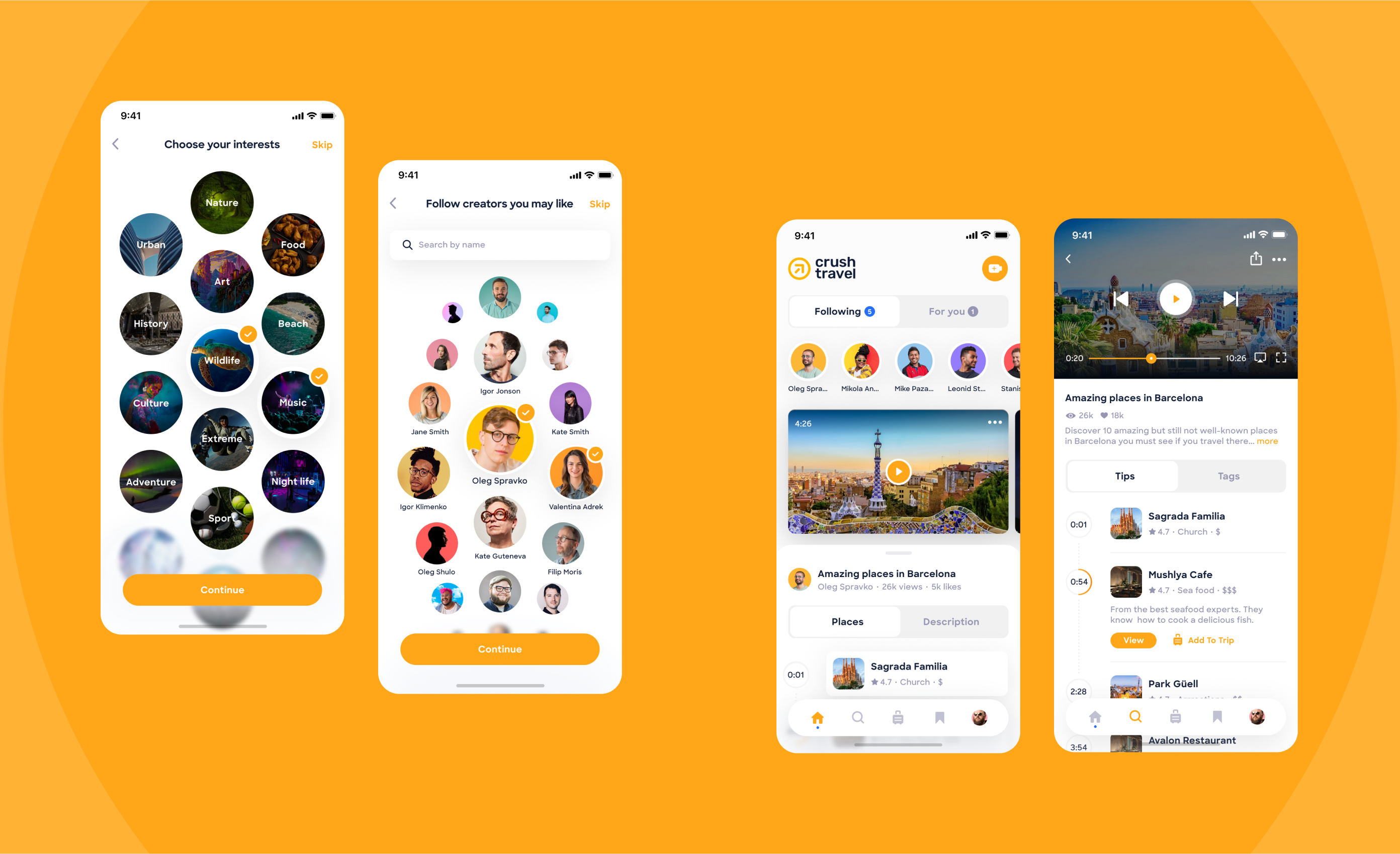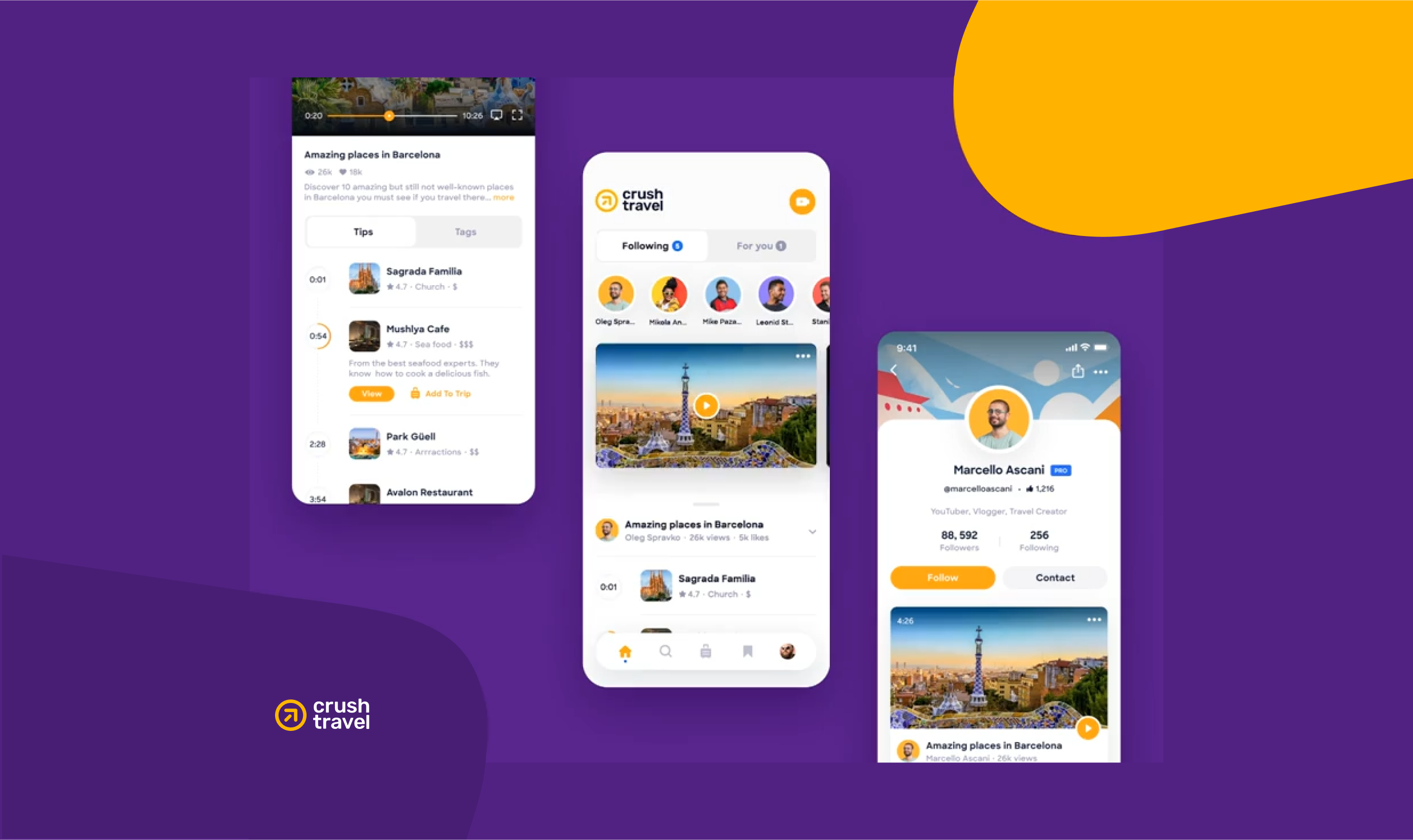 We’ve prioritized the convenience of Crush Travel for all users. Our focus was on content creators, who play a vital role in connecting providers and travelers enhancing the product’s value. Additionally, we developed a desktop application for content creators to manage their videos effectively.