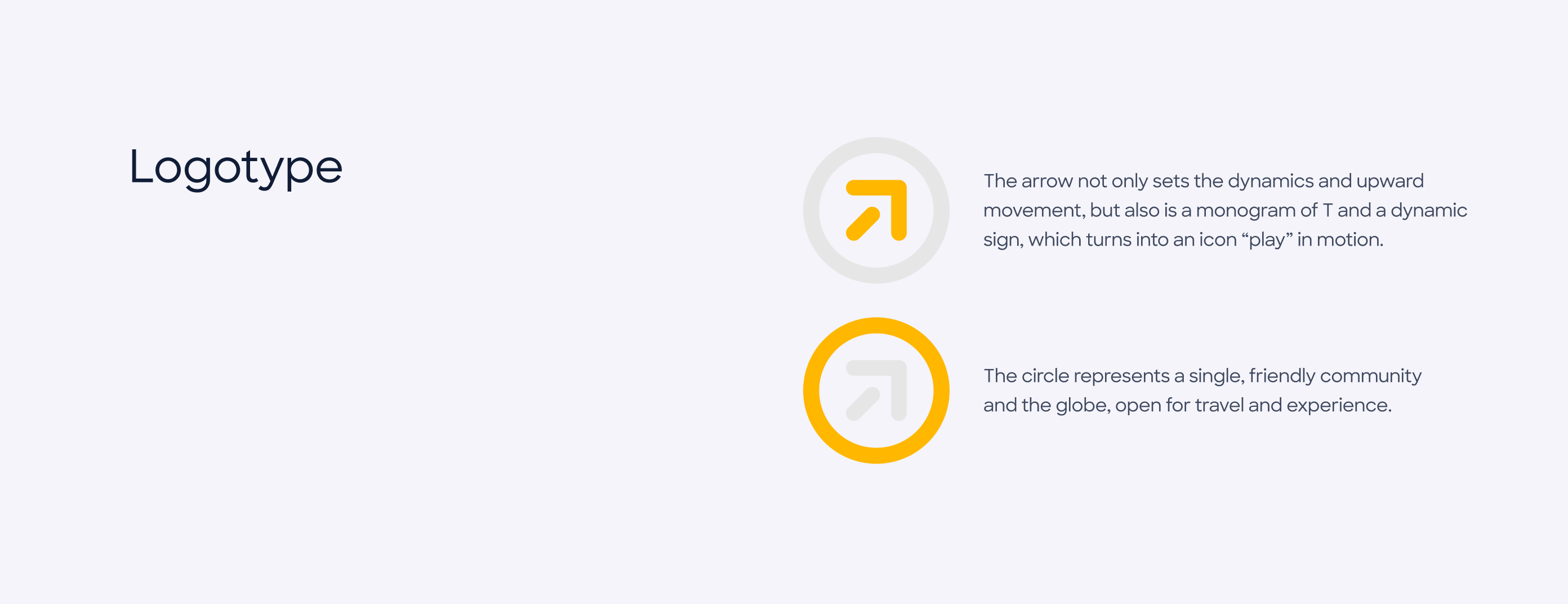 The new logo incorporates the company’s slogan—Press play on your next trip. The dynamic arrow doubles as the letter T, transforming into a classic play button in the animated logo. The circular backdrop symbolizes globalization and community.