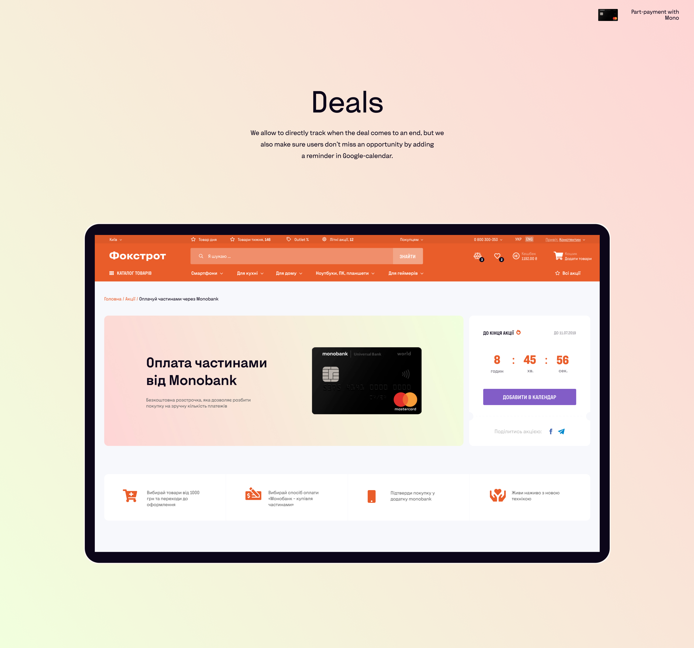 Close collaboration with the team of the largest Ukraine’s retail chain and redesign of their e-commerce platform
