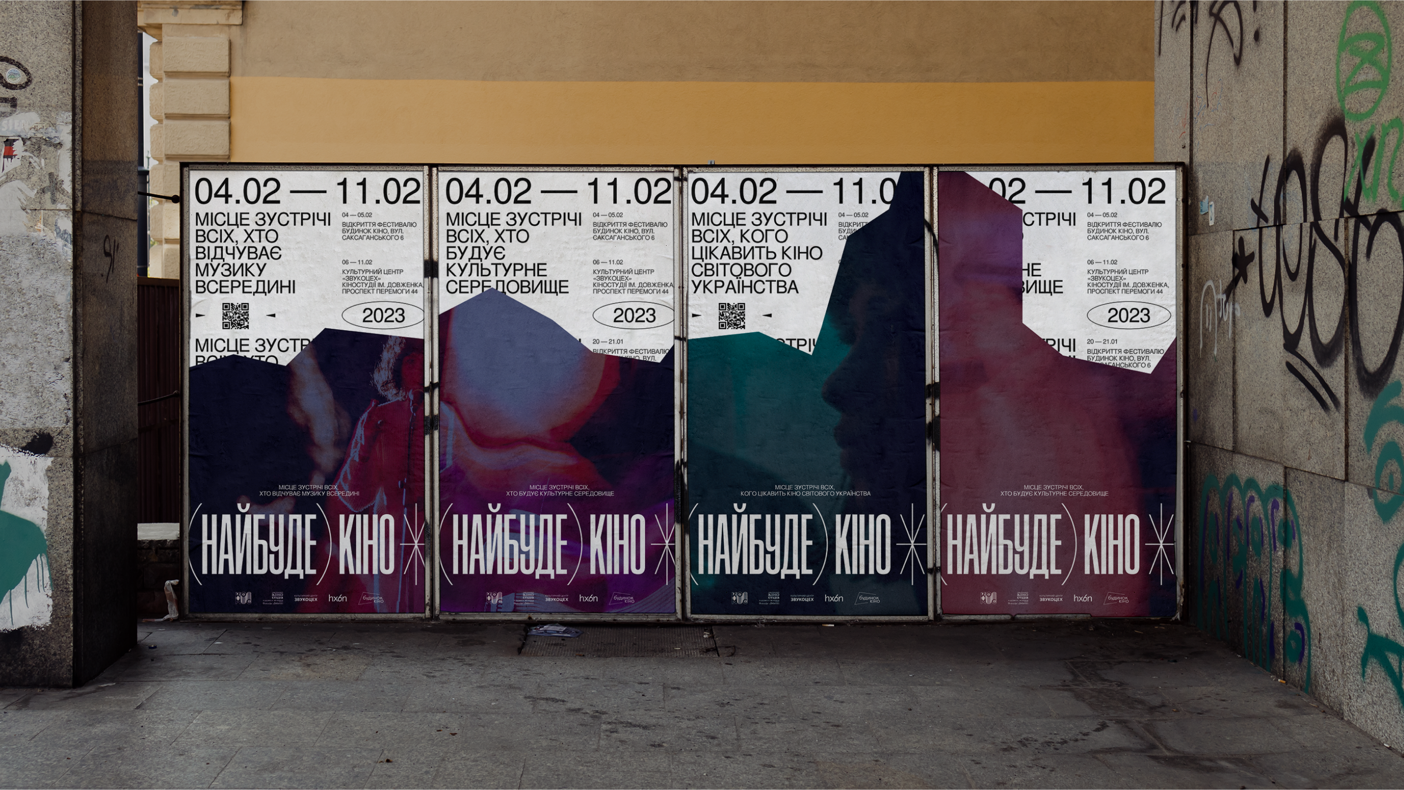 The festival logo embodies its essence through symbolic images — a lens ring and a projection on a big screen. These elements represent cinema tools that mediate between the audience and the world of movies. This aligns with the festival’s role as a mediator between film enthusiasts and the cinematic experience.