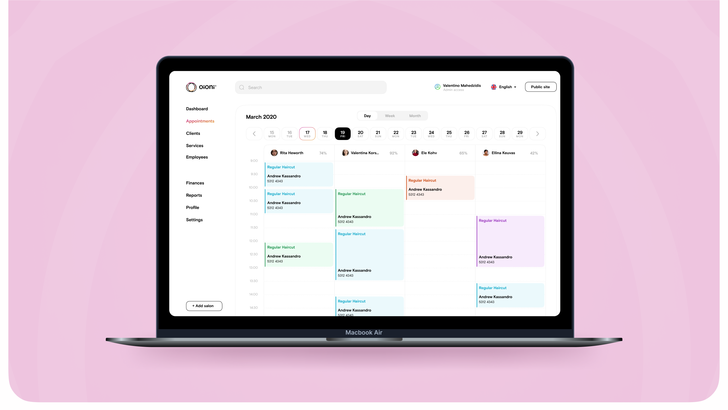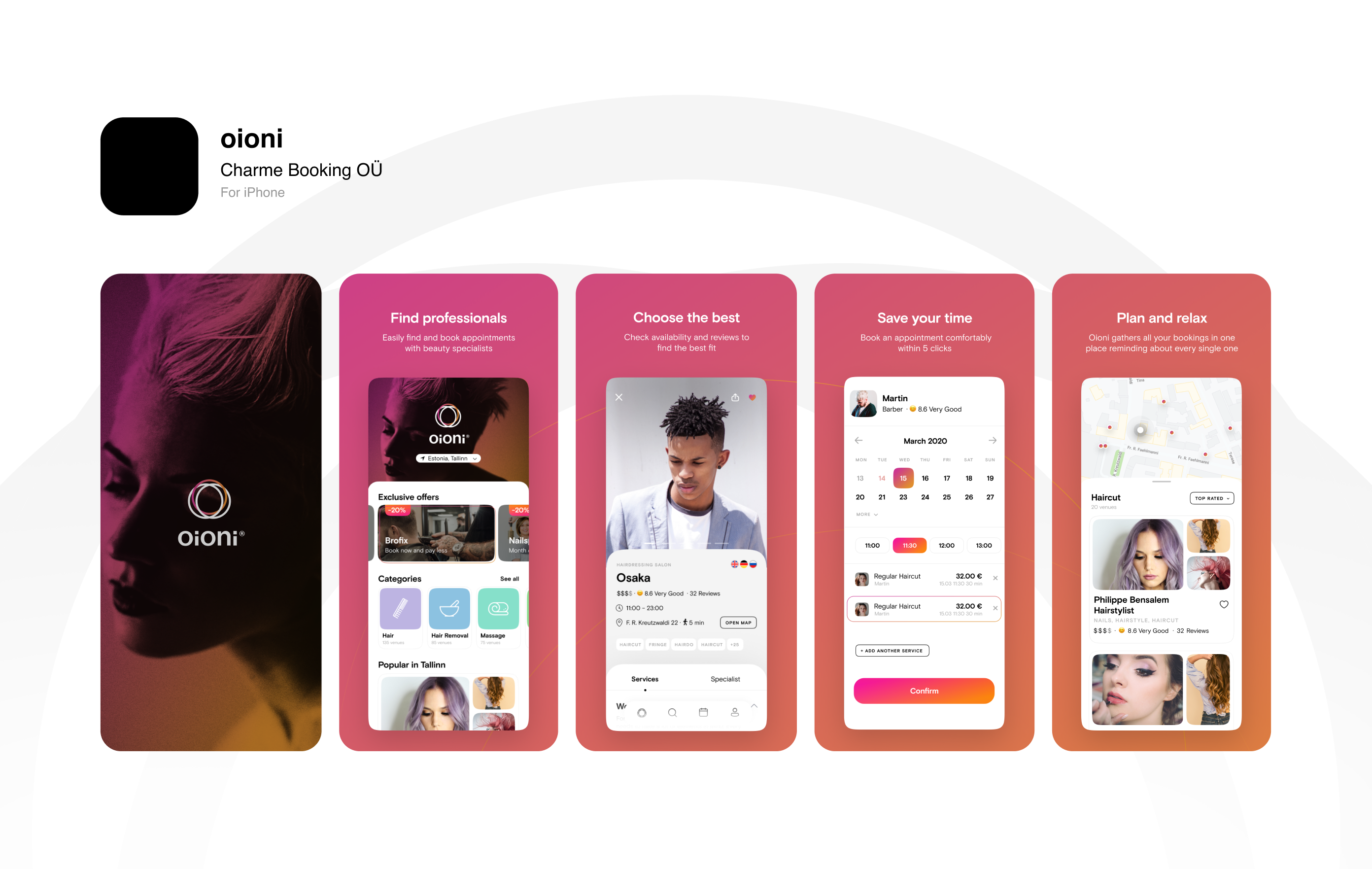 Oioni. Beauty Treatment Booking Application