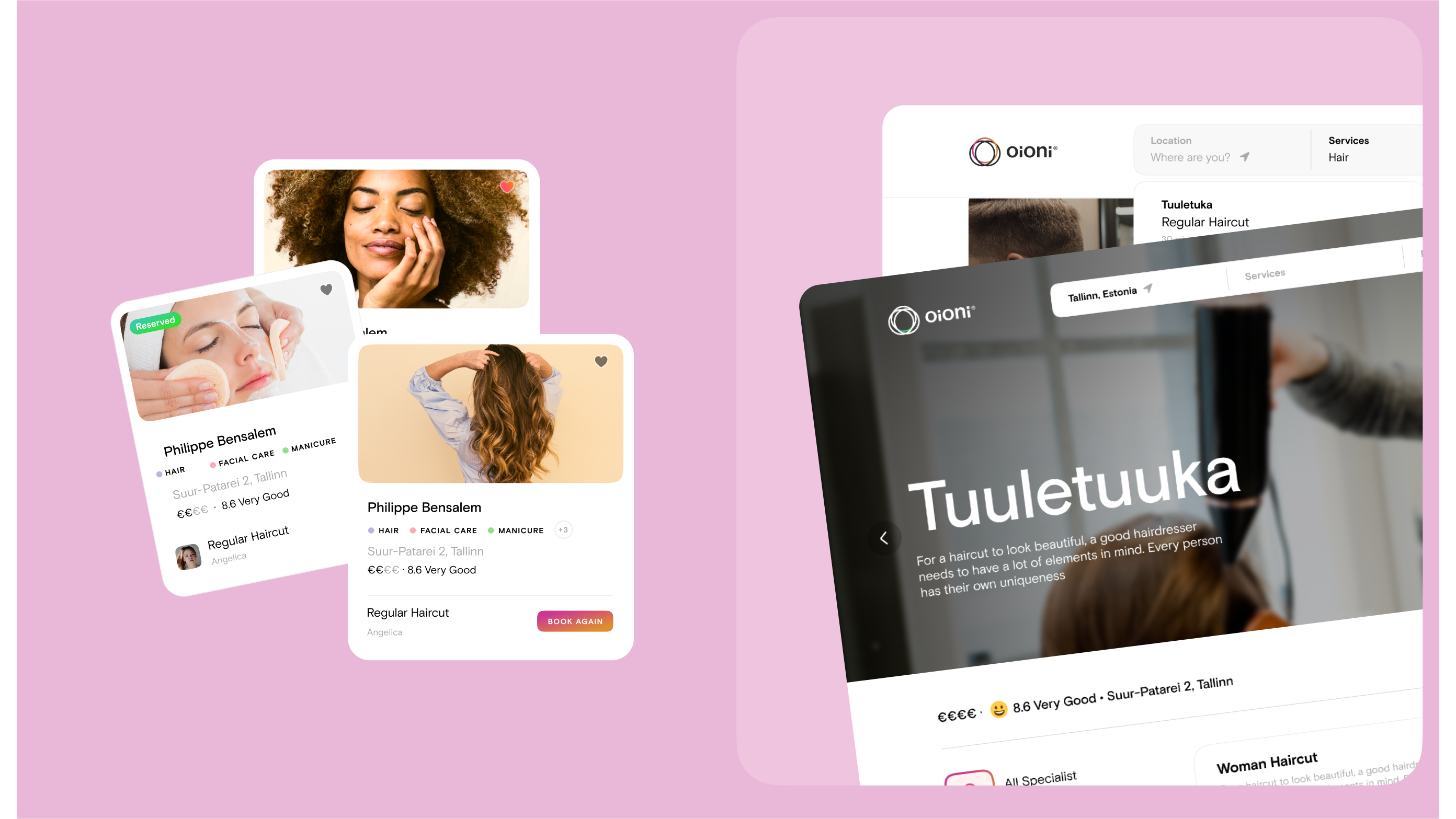 Oioni is an innovative beauty booking platform from Estonia, poised to revolutionize the beauty industry. The mission of our partnership was to transform how beauty salons, skilled professionals, and customers interact. By seamlessly integrating the needs of these three key stakeholders into one unified, user-friendly ecosystem, we are redefining the beauty booking landscape.