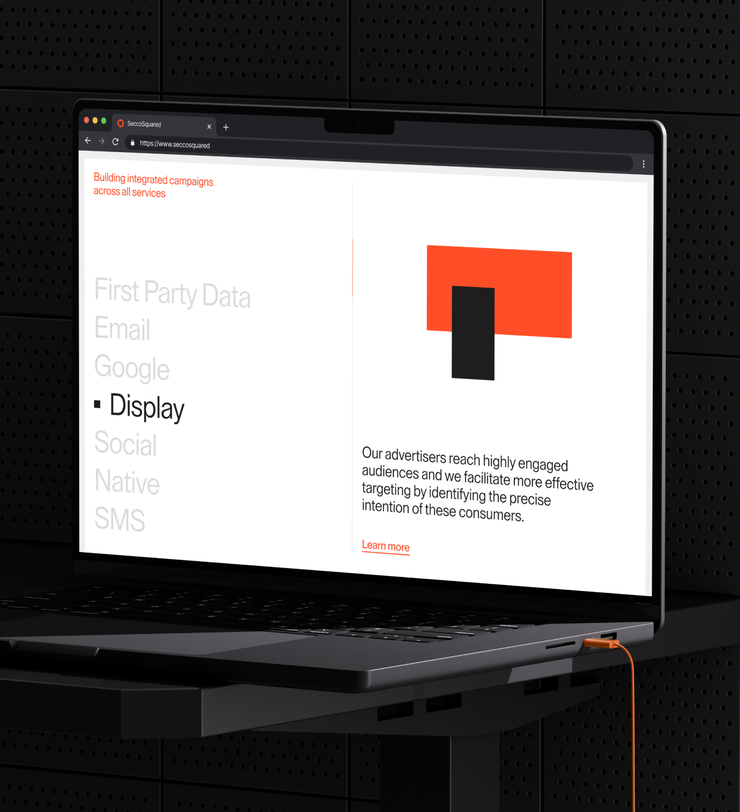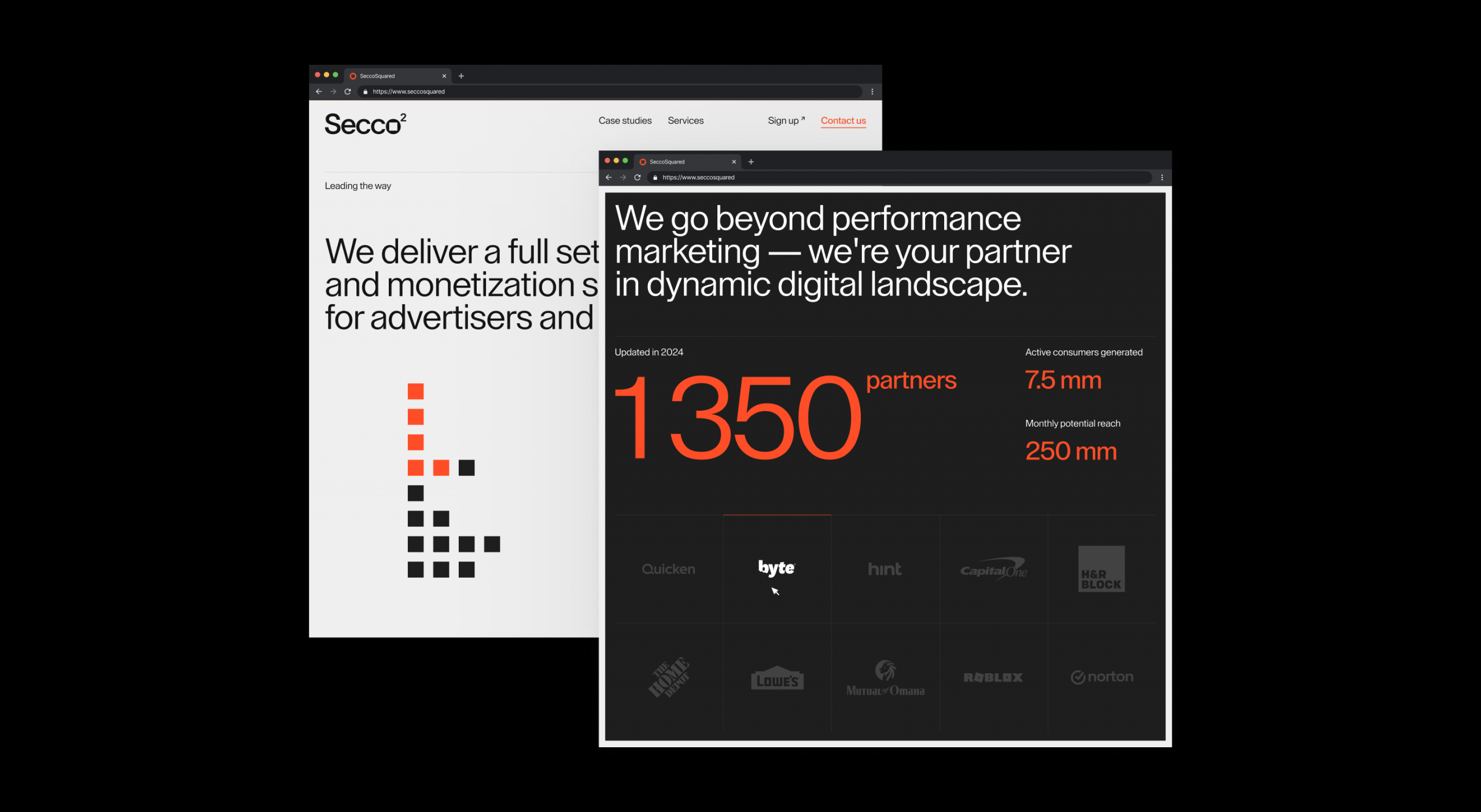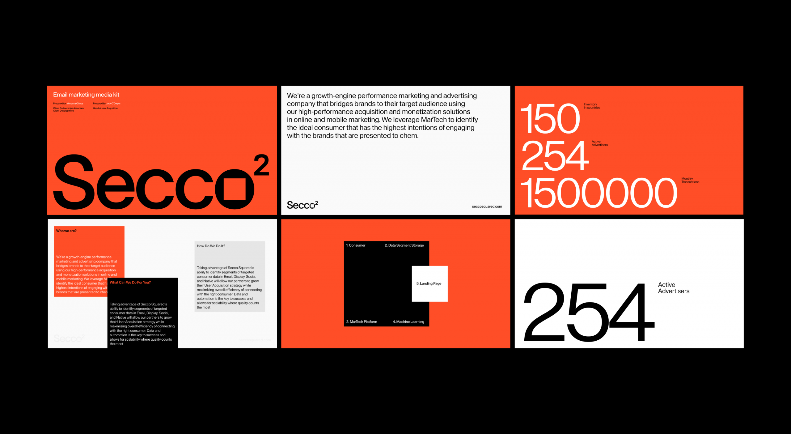 Secco Squared is an omnichannel marketing agency based in New York. Initially, they had a standard corporate brand identity and landing page. We worked on developing their brand potential into a concise yet recognizable form, which we later expanded and implemented on their website.