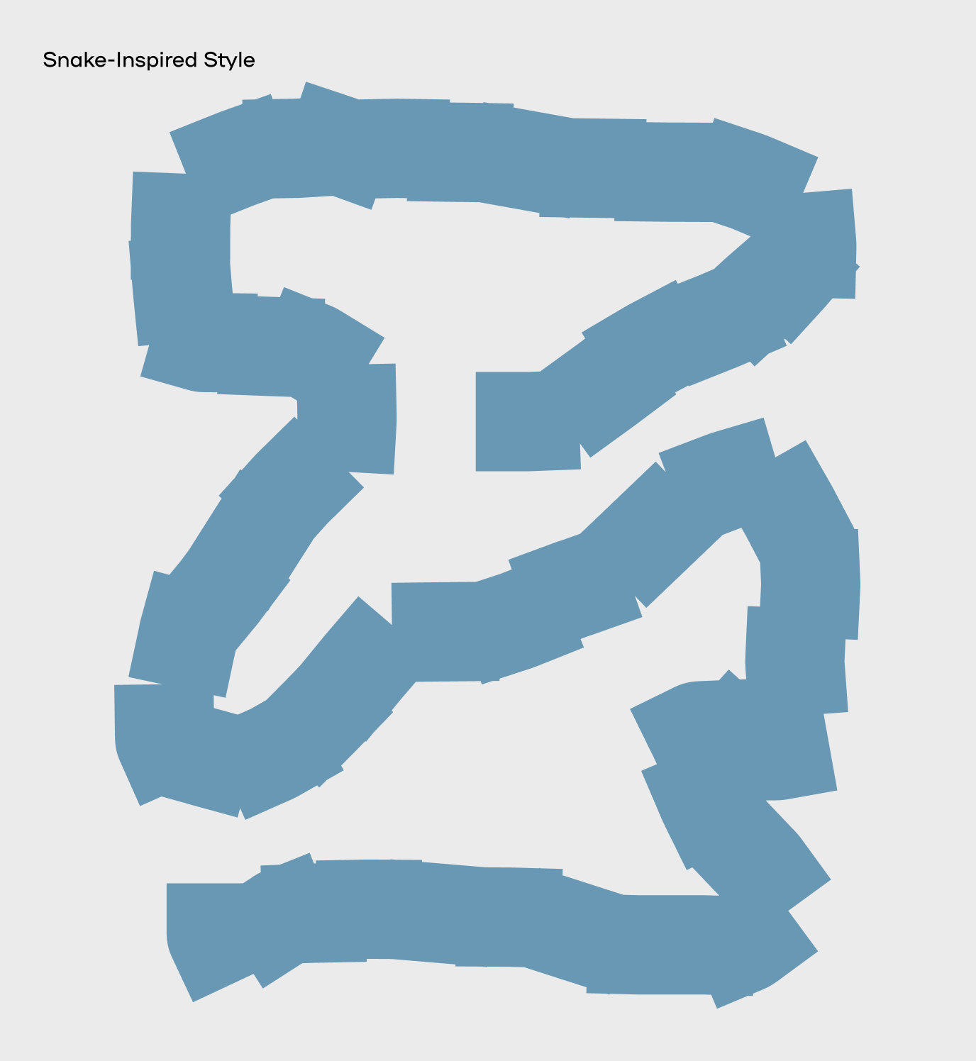 Visually, this took the form of clumsy, shifting patterns that bend and coil like a snake in motion. On posters, the forms grow into one another, building larger structures that feel carefully constructed yet alive.